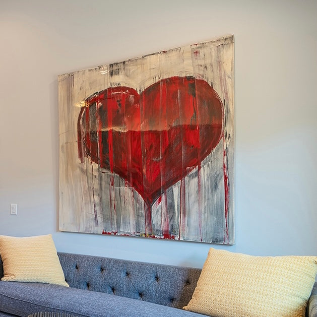 "One Love" is an original work by Vova. Paint, and varnish on canvas. 40"W x 60"H